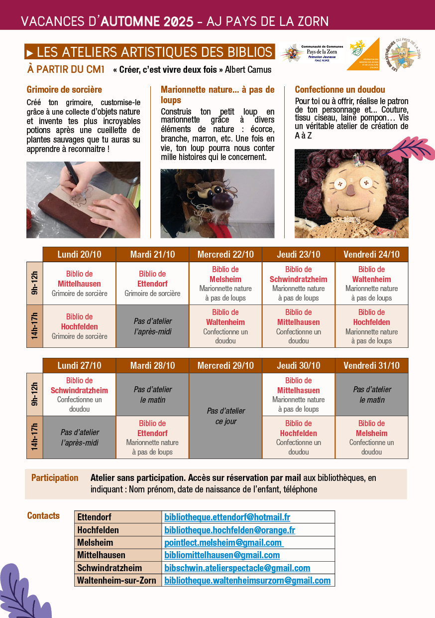 Animation Jeunesse Pays de la Zorn > Activités > Les ateliers biblio des vacances d'automne