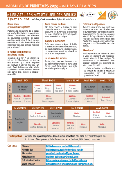 Animation Jeunesse Pays de la Zorn > Activités > Les ateliers vacances des biblios