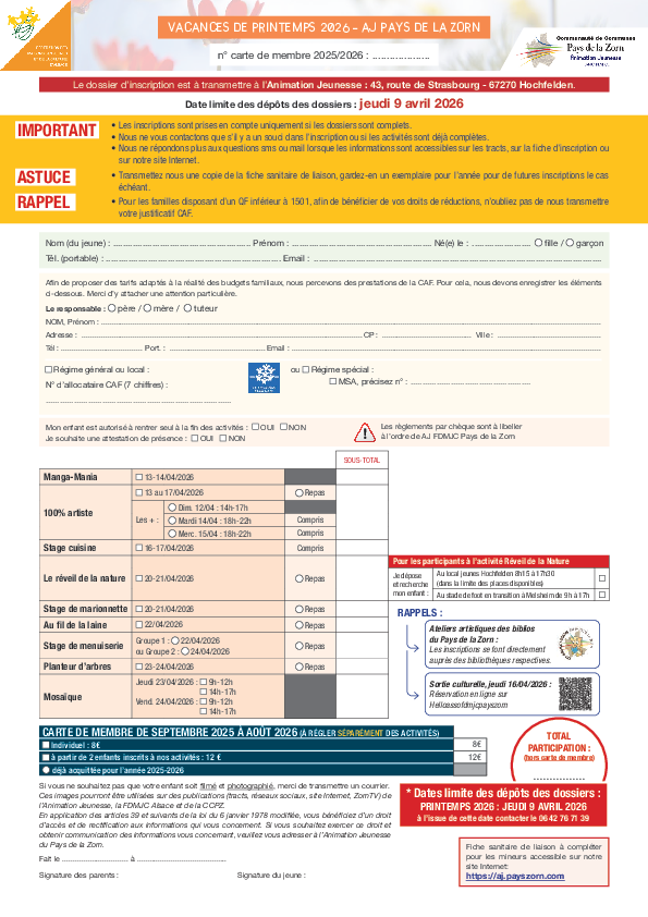 Animation Jeunesse Pays de la Zorn > Activités > Vacances de Printemps